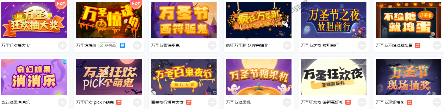 在H5制作工具中搜索“万圣节”关键词,筛选出与万圣节相关的模板。